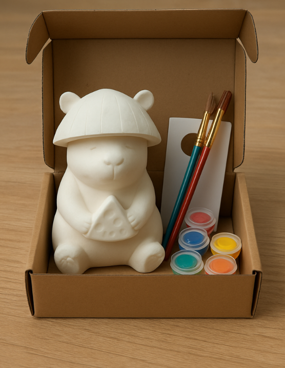 Фигурката е изцяло бяла и готова за боядисване, а комплектът съдържа всичко необходимо за забавно и креативно изживяване.